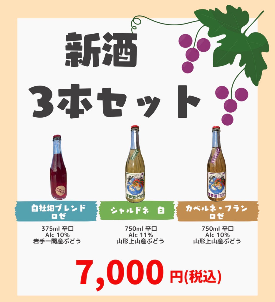 宮城縣七ヶ浜ワイナリーの新酒ワインの3本セットです。